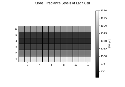 fill_factoris \(FF_1\) andfill_factor_referenceis \(FF_0\).In the section See Also, you will find two packages that can be used to calculate the irradiance at different points of the module.