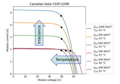 calcparams_desotocan be used by singlediode to calculate an IV curve.The model is described in [1].